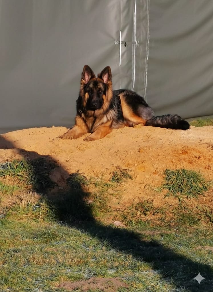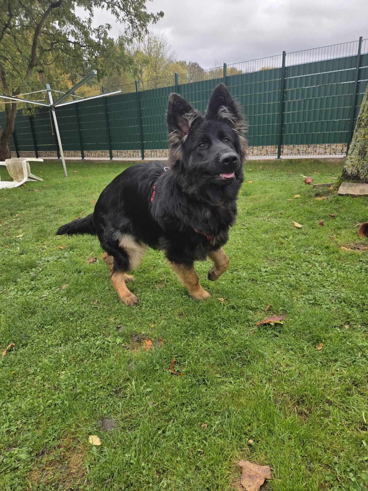 Als Vater für unsere Welpen , haben wir uns für Baldur vom schwarzen Ritter entschieden, Er ist ein großer knochenkräftiger Rüde aus 100% der alten DDR-Linie .